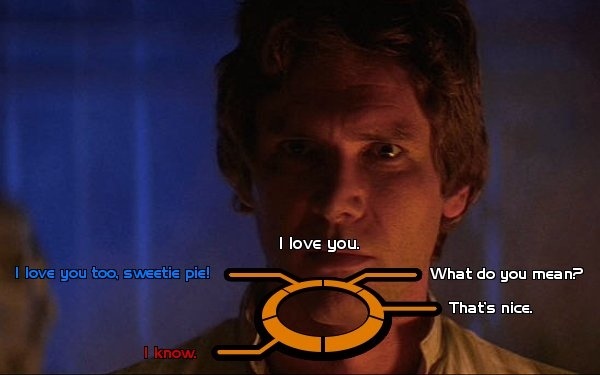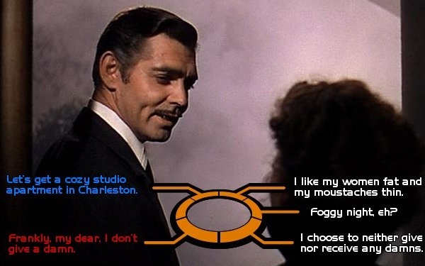¿Qué hubiera ocurrido en películas como Casablanca, Pulp Fiction, Espartaco, Lo que el viento se llevó, Cazafantasmas, Algunos hombres buenos, El gran Lebowski y Star Wars si los protagonistas hubieran tenido distintas opciones entre las que elegir en momentos clave como en una partida de Mass Effect? ¿Han Solo tendería más a «Paragon» o a «Renegade»? Con Jules lo tengo bastante claro…