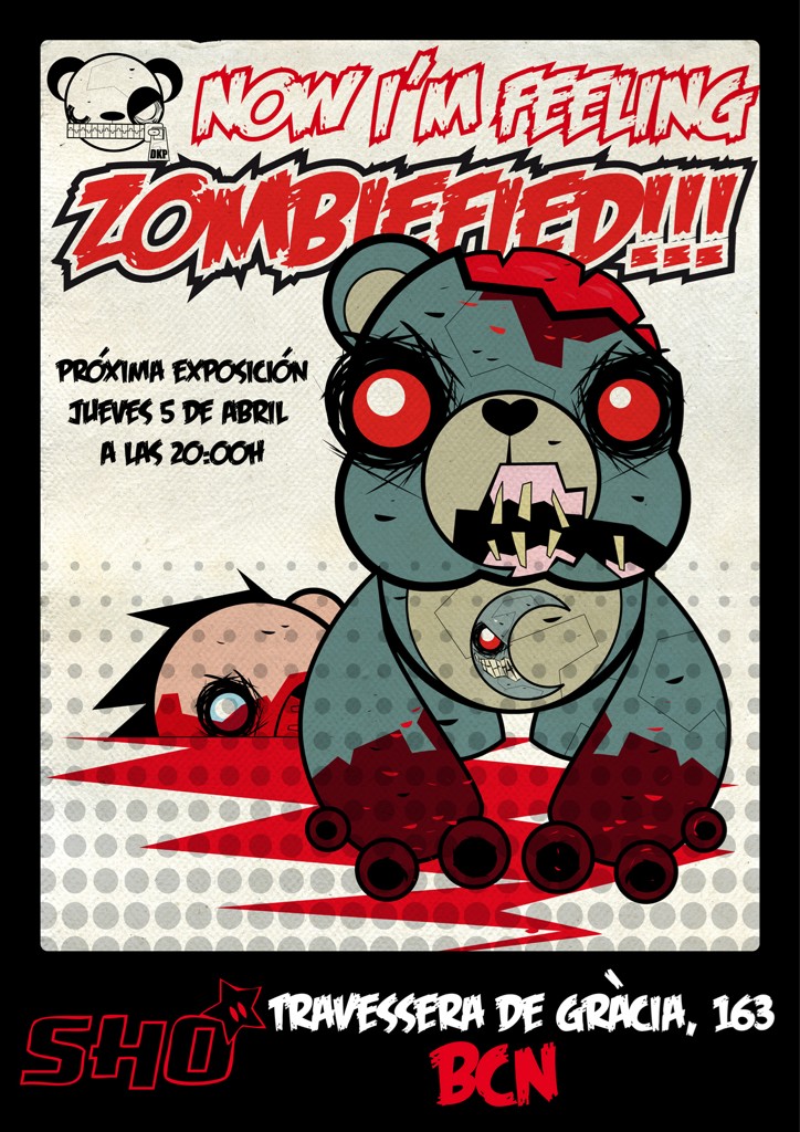 Este jueves 5 de abril, a las 20 hrs. inauguran la nueva exposición de los catalanes Dkillerpanda, dúo multidisplicinar de Barcelona formado por Juan Rubí (ilustrador, diseñador gráfico) y Carles Jiménez (guionista y realizador) nacido a finales de 2004. Con varios trabajos editados bajo el común denominador de la ciencia ficción, la fantasía y el terror (yo les conocí gracias a su serie de toys Monster Theater), estos catalanes presentan Now I’m Feeling Zombiefied. Pandas, zombis y una expo con nombre de canción de la banda gótica Alien Sex Fiend, ¿qué más se puede pedir?