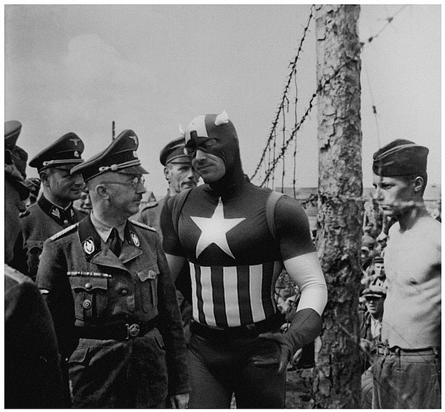 Durante la Segunda Guerra Mundial, cómics como Superman dedicaron sus páginas a labores de propaganda y apoyo a las tropas. El mismo Capitán América nació en marzo de 1941 con una marcada finalidad propagandística (no en vano en el primer número de la colección aparece propinándole un puñetazo a Hitler). Así que, ¿por qué no imaginar a villanos y superhéroes interviniendo en algunos de los momentos más trascendentes de la historia mundial?