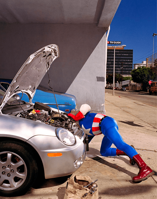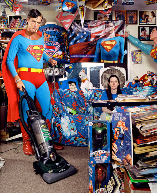 Pues bien, el fotógrafo californiano Gregg Segal siguió a algunos de estos superhéroes urbanos de Hollywood Boulevard hasta sus casas, donde les inmortalizó realizando las tareas más cotidianas mientras aún seguían enfundados dentro de sus disfraces, descubriendo la obsesión por la limpieza de Superman o el severo y preocupante síndrome de Diógenes de Spider-Man…
