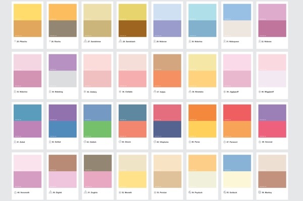 Tazas, fundas de iPhone, mobiliario para la casa, bicicletas, adornos de Navidad, cubos de Rubik… Todo objeto que se os ocurra tiene una coqueta versión Pantone equivalente creada para uso y disfrute de los amantes del diseño. ¡Incluso los pequeños Pokémon han sido reducidos por la canadiense Stephanie Trimboli a sus dos colores principales creando así un póster-pantonera de la saga!