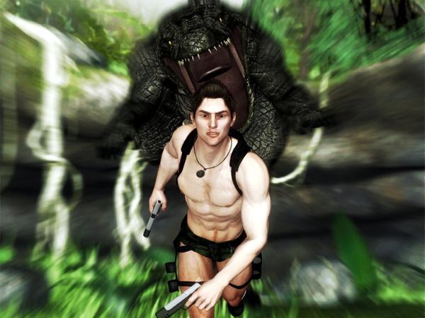 Raffalle, alias Ulysses0302 en deviantART, creó hace ya un tiempo a Nathan Thomas, una versión masculina de Lara, como reflexión sobre las distintas maneras en las que hombres y mujeres son retratados en los jueguicos. Frente a la arqueóloga de impresionante delantera (conseguida por accidente, todo hay que decirlo), este joven explorador pasea su pecho descubierto y sus firmes abdominales entre cascadas y ruinas, reproduciendo a la perfección cualquiera de las poses superhipermegasexys (y un poco ridículas) a las que la Lara anterior al reboot de este año nos tenía acostumbrados.