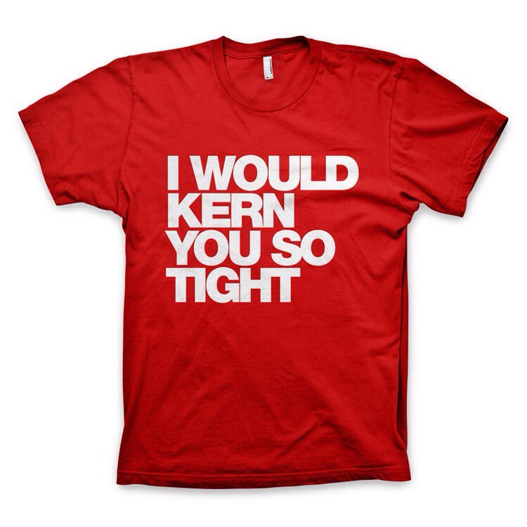 Una apuesta segura son las camisetas y demás merchandising de la web Words Brand (mensajes como I would kern you so tight o I’m very font of you because you’re just my type lo petan muy fuerte), pero hay algo mejor todavía: en DIY print SHOP tienen a la venta un pack de serigrafía para que tú mismo te hagas el camisetón perfecto.