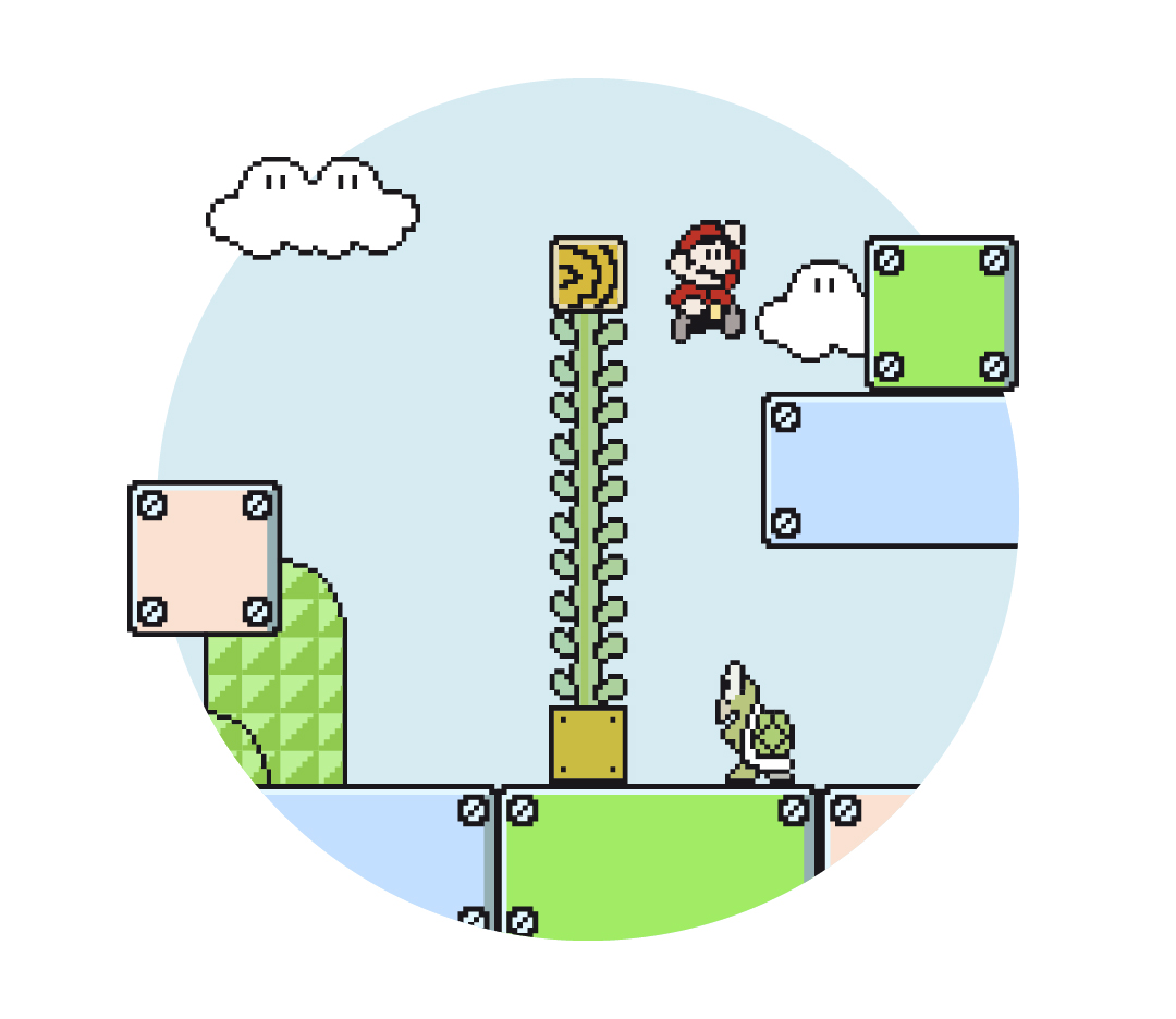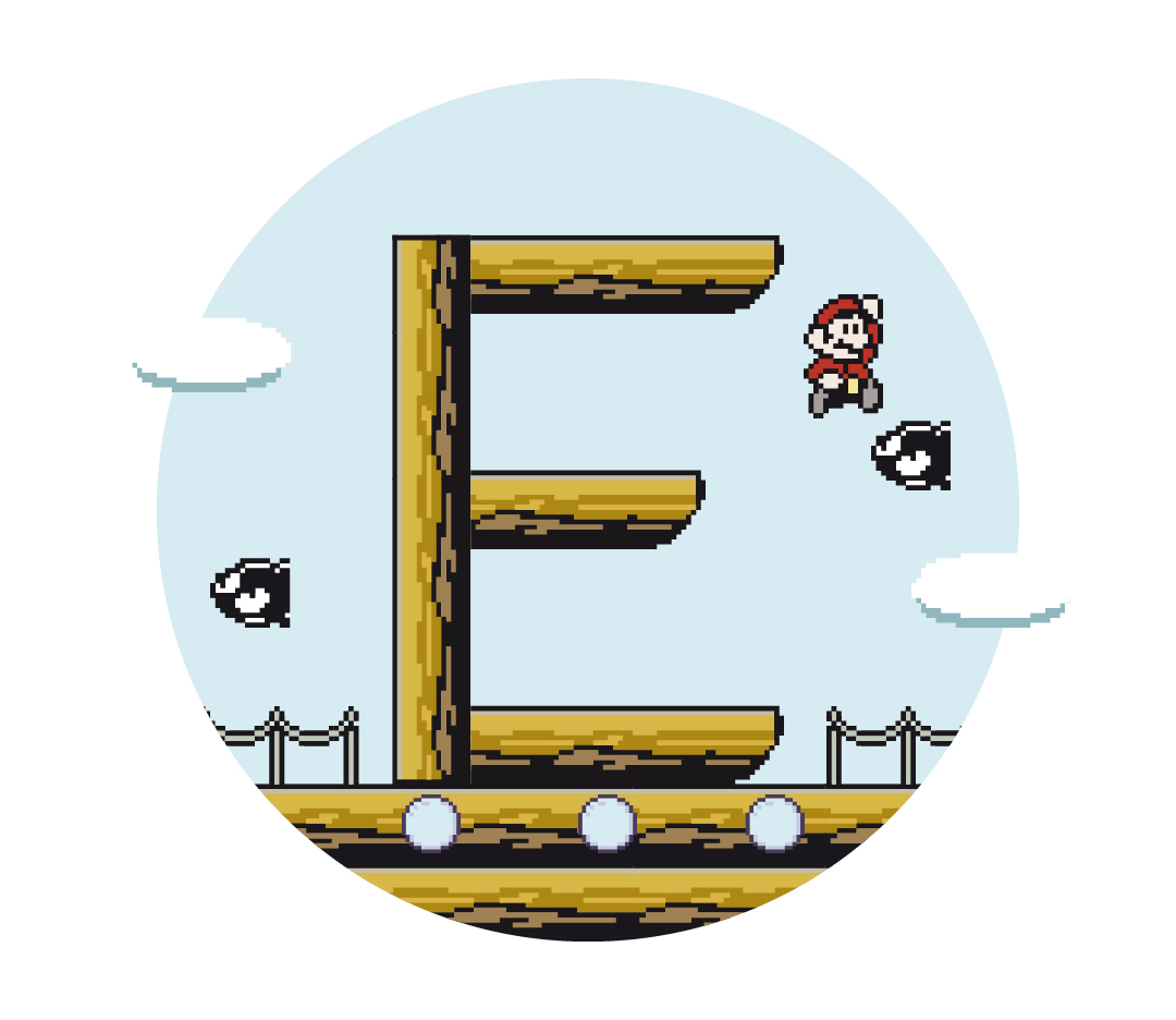 El director de arte milanés Francesco Basile se ha dado un paseo por el universo Super Mario Bros. y ha construido (o quizá se la ha encontrado escondida entre los distintos mundos, quién sabe…) una curiosa tipografía a partir de algunos de los elementos más conocidos de sus escenarios: monedas, bloques, tuberías y demás objetos inanimados se convierten ahora en astas, perfiles o vértices de estas letras-obstáculo que prometen darle mucha guerra al fontanero bigotón mientras acude al rescate de la Princesa Peach.